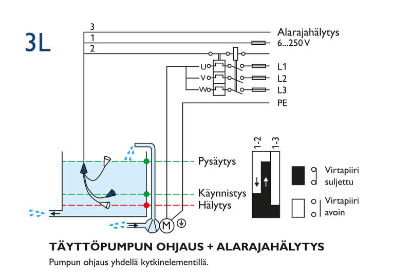Täyttöpumpun ohjaus + alarajahälytys. 5 m PVC-kaapeli