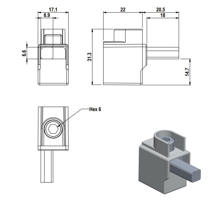 Kiristys kuusiokolo avain: AV 5/HEX 5