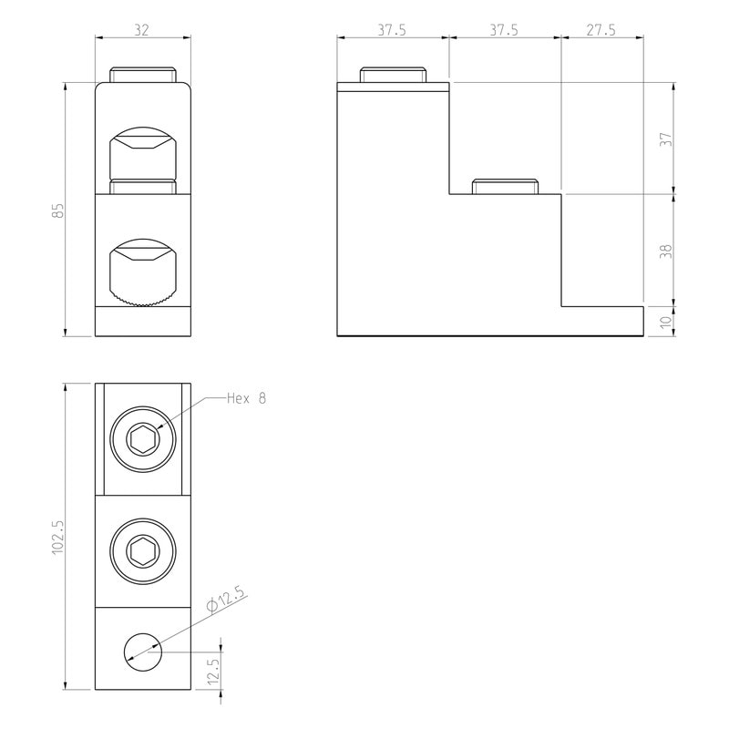 Kojeliitin (Al/Cu) Alumiini ja kupari (Al/Cu) Lapa alhaalla kaapeleiden liitin kaapeleille: Al 25 - 240mm Cu 25 - 240mm Kiristys kuusiokolo avain: HEX 8 Vääntömomentti: 25 (35-120 mm2) / 40 (150-240 mm2)