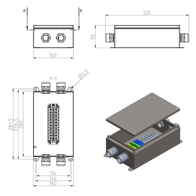 Riviliitinkotelo ruostumaton teräs IP66