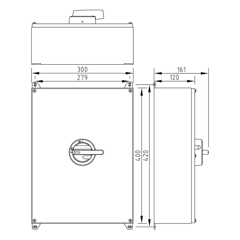 Sisältää:Kytkimen: KU 3125 (3600785) | Kaapelin koko kytkentätilaan (vain Cu): 6-70 mm2 | Apukoskettimen: 1V160KU (3600819) Kaapeliläpiviennit: 2 x M50 (27-38mm) EX-suojattu metalli + 1 x M16 (5-10mm) EX-suojattu metalli Läpivientien asennussuunnat ilmoitettava tilattaessa!