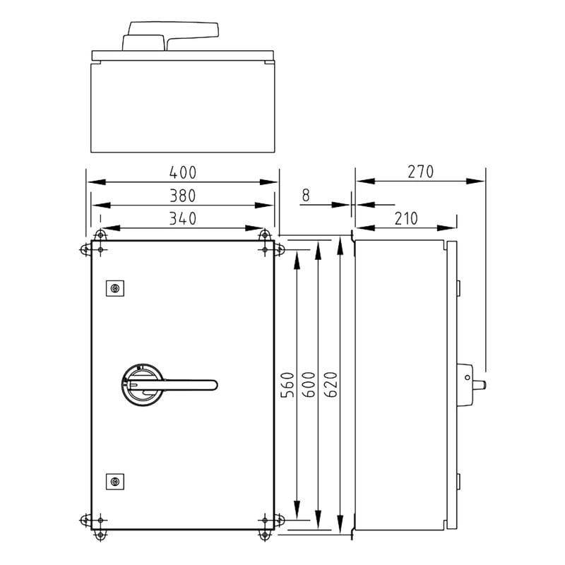 Sisältää:Kytkimen: KU 6125 (3600795) | Kaapelin koko kytkentätilaan (vain Cu): 6-70 mm2 | Apukoskettimen: 1V160KU (3600819) Kaapeliläpiviennit: 4 x M50 (27-38mm) metalli + 1 x M16 (5-10mm) metalli Läpivientien asennussuunnat ilmoitettava tilattaessa!