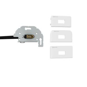 Konnect design click -sarjan (KDC) AV-moduuli. Moduulissa on HDMI–naarasliitin 20 cm kytkentäkaapelilla, jossa on HDMI-naarasliitin välijohtoa varten. ½-Koko, tarvitsee toisen ½-kokoisen samaan rasiaan (esim. sokea-levy 7456 000 040, SSTL 7935100) Pakkauksessa tulee mukana kolme erikokoista peitelevyä: 50*25 mm, 54*27 mm ja 55*28 mm, joilla voidaan sovittaa kaikkiin yleisimpiin sähkökalusteisiin. Peitelevyt ovat valkoiset (RAL 9010).