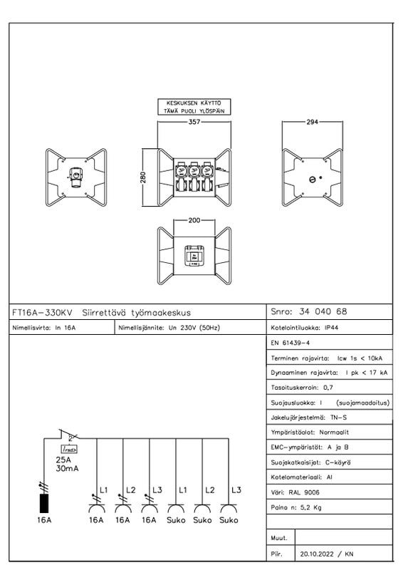 FTRK024KV Työmaan alakeskus 4S+2x16A400V/kojev16A/400V+VV4n40A/30mA