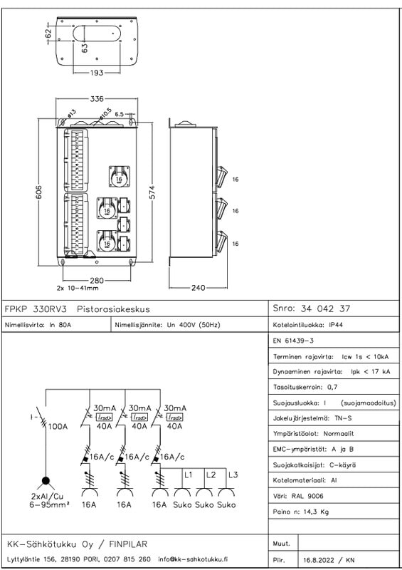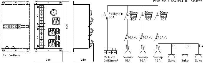 KK-SÄHKÖTUKKU - FPKP 330R 80A IP44 AL - FPKP330R pistorasiakeskus