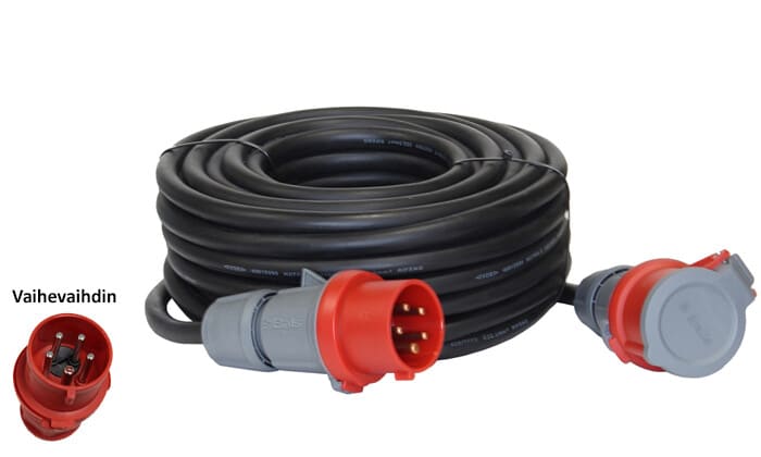 KK576 Jatkojohto 5x 16A,vaihevaihtimella,kumik H07RN 5x2,5m, pit 20m