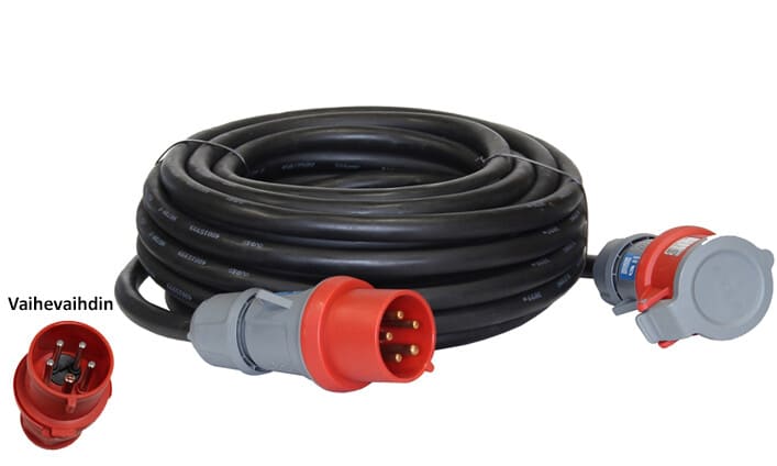 KK586 Jatkojohto 5x32A,vaihevaihtimella, kumik H07RN 5x6,0 mm pit 20m