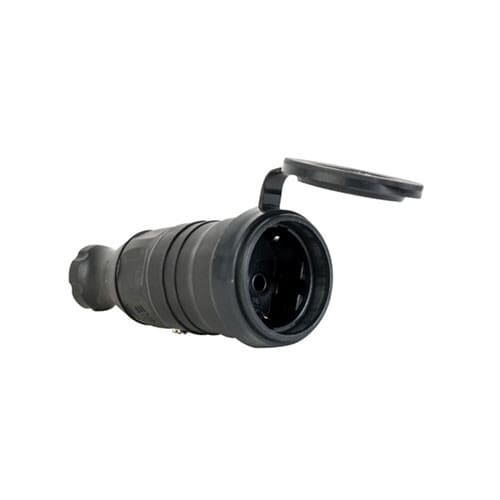 Jatkopistorasia,kumisuko,musta IP44 +läppäkansi Jatkopistorasia 1-osainen, kumi,ruuviliitos, IP44