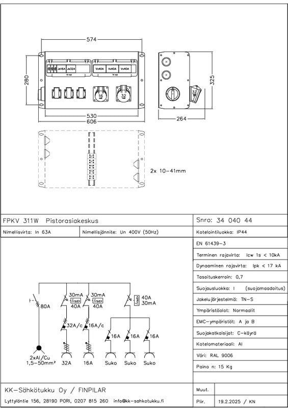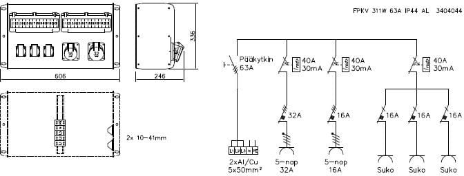 KK-SÄHKÖTUKKU - p.rasiat 3xsch+1kpl 16/32A5-na - FPK 311W PISTORASIAKESKUS