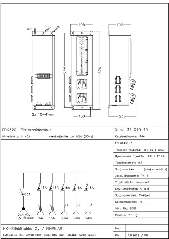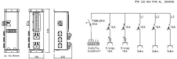 KK-SÄHKÖTUKKU - p.rasiat 3xsch+2 kpl 16A/5-na - FPK 320 PISTORASIAKESKUS