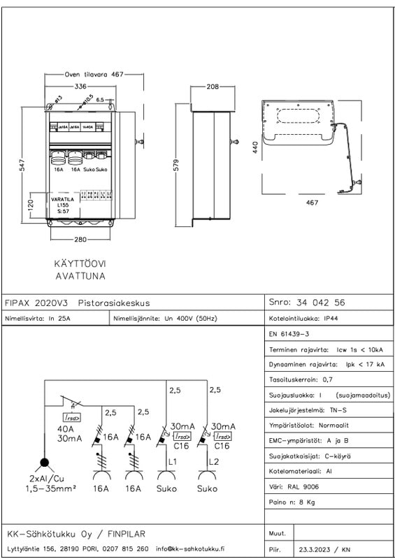KK-SÄHKÖTUKKU - Pistorasiakeskus - FipaX 2020 40A IP44 AL