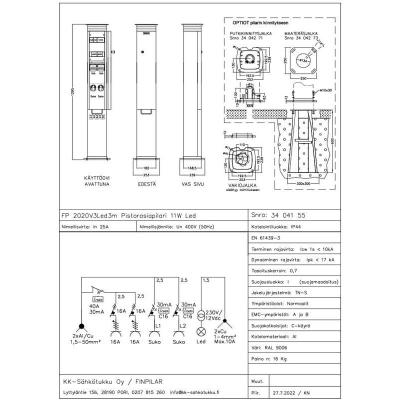 KK-SÄHKÖTUKKU - Pistorasiakeskus - FP 2020V3Led3m 25A IP44 AL