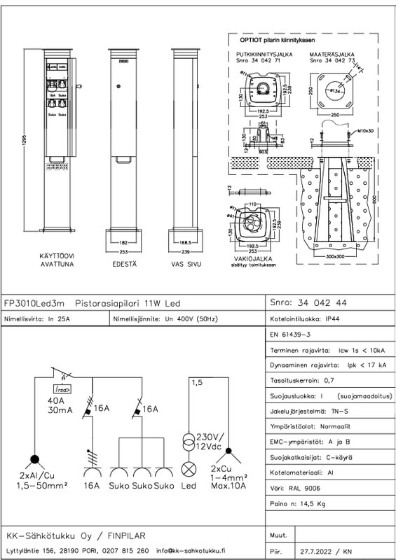 KK-SÄHKÖTUKKU - Pistorasiakeskus - FP 3010Led3m 25A IP44 AL