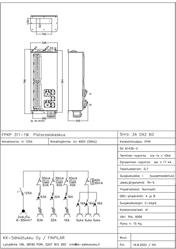 KK-SÄHKÖTUKKU - Pistorasiakeskus - FPKP 311-1W 125A IP44 AL