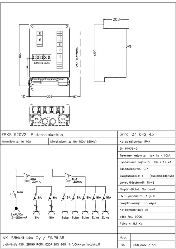 KK-SÄHKÖTUKKU - Pistorasiakeskus - FPKS 520V 40A IP44 AL