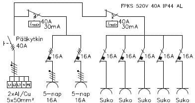 Ketjutus, pistorasiat 5x116+2x516, 2x vikavirtasuoja
