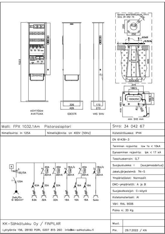 KK-SÄHKÖTUKKU - Pistorasiakeskus - FPX 1032.1Am 125A IP44 AL