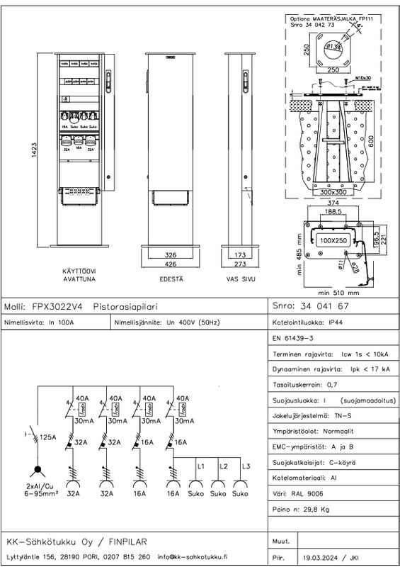KK-SÄHKÖTUKKU - Pistorasiakeskus - FPX 3022V4 100A IP44 AL