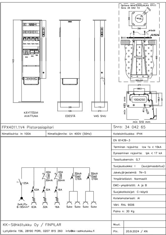 KK-SÄHKÖTUKKU - Pistorasiakeskus - FPX 4011.1 125A IP44 AL