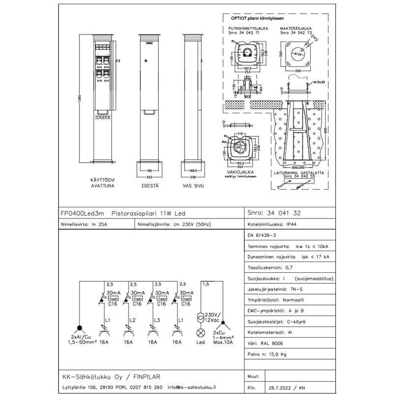 KK-SÄHKÖTUKKU - Pistorasiakeskus venesatama - FP 0400Led3m 25A IP44 AL