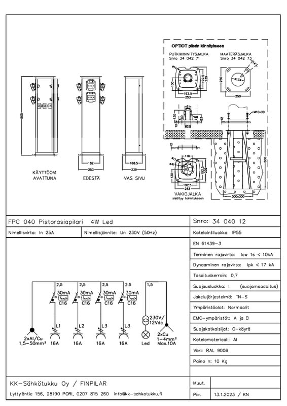 KK-SÄHKÖTUKKU - Pistorasiakeskus venesatama - FPC 040 16A IP55 AL