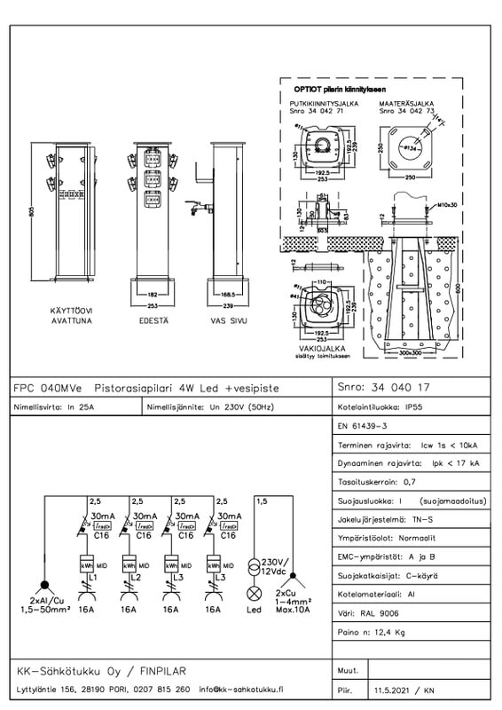 KK-SÄHKÖTUKKU - Pistorasiakeskus venesatama - FPC 040MVe 16A IP55 AL M+Vp