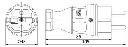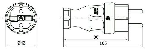 KK-SÄHKÖTUKKU - Pistotulppa kumi IP44 mus - M404001 1PNE 16A 230V