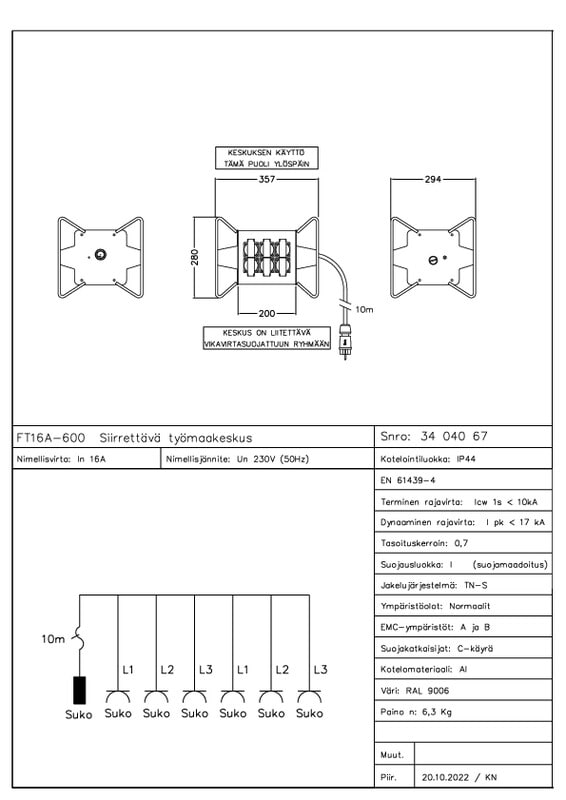 KK-SÄHKÖTUKKU - Työmaan alak.16A/230V+10m3x2,5 - FT16A-600