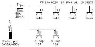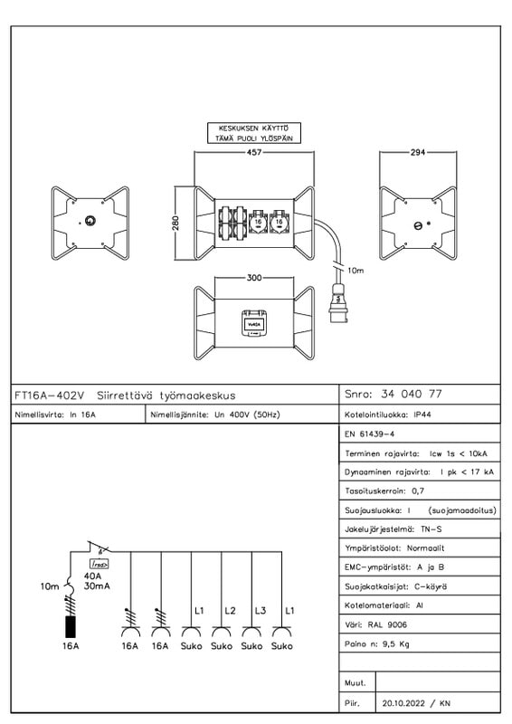 KK-SÄHKÖTUKKU - Työmaan alakeskus 16A/400V - FTRK024V VIKAV.4-NAP.30mA