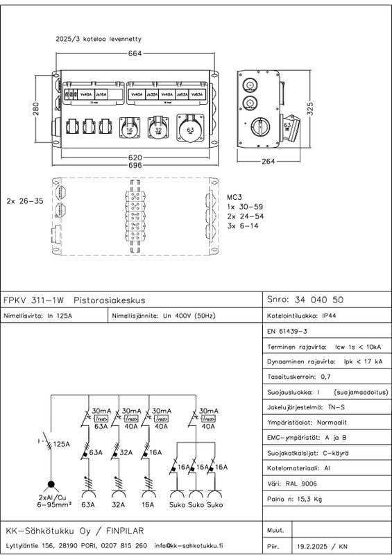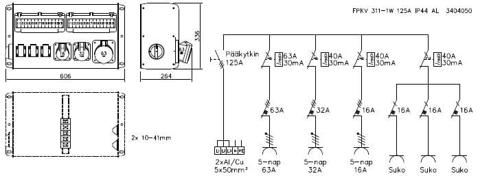 KK-SÄHKÖTUKKU - Työpaikkakeskus - FPK-V 311-1W 125A IP44 AL