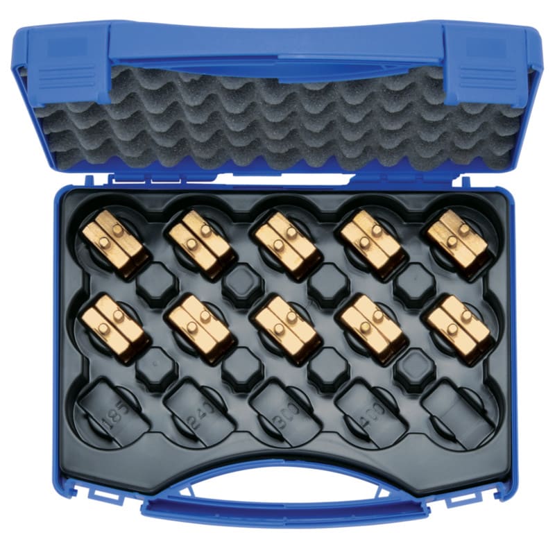 Puristusleukasarja 6-150 mm2 Cu-putkikaapelikengille ja jatkoliittimille. Standard-type mitoitus. Soveltuu työkaluille K354, EK354, EK354ML.