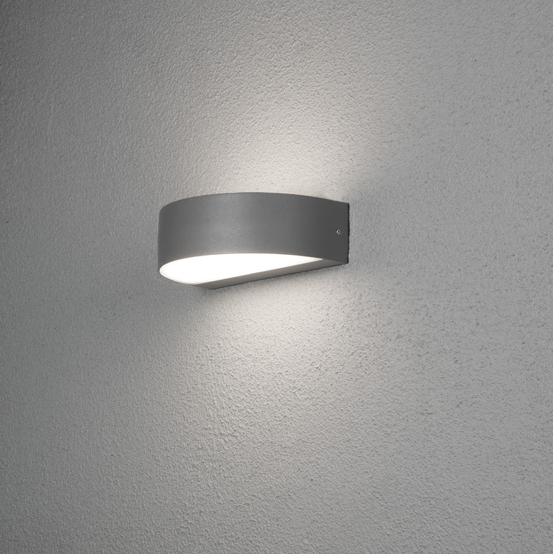 Seinävalaisin/numerovalaisin, antrasiitinharmaa, huurreakryyli, korkeus 6 cm ilman numerolaattaa, korkeus numerolaatan kanssa 18 cm, mukana numerot 0-9 x 3, IP54, 800lm, kiinteä LED 2x4,5W, 3000K, maalattu alumiini.
