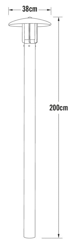 Pylväsvalaisin, musta, korkeus 200 cm, opaalilasi, IP44, E27 valonlähde ei sis. pakettiin, polttimon max korkeus 135 mm.