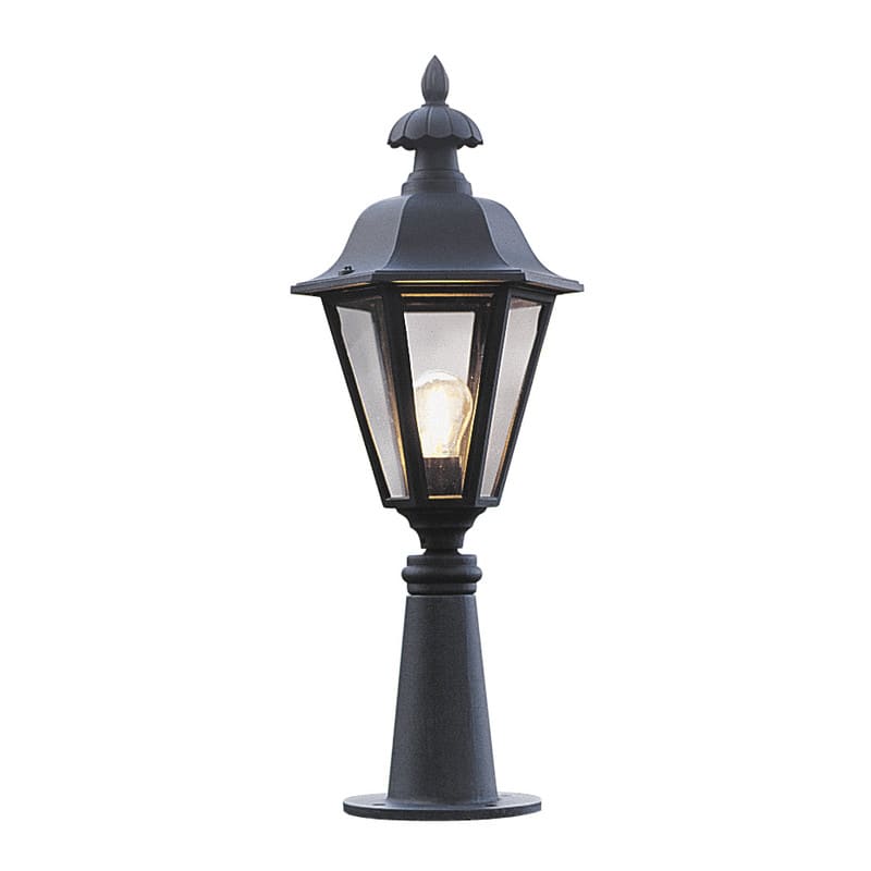 Pylväsvalaisin, musta, lyhdyn korkeus 41 cm, kirkas akryyli, IP23, E27 valonlähde ei sis. pakettiin, polttimon max korkeus 215 mm.