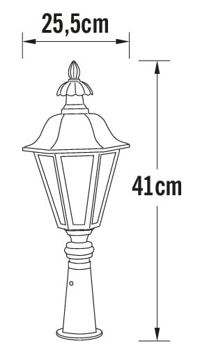 Pylväs tilattava erikseen, korkeus ilman lyhtyä 24,5-263 cm.