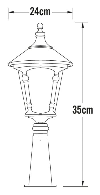 Pylväs tilattava erikseen (korkeus ilman lyhtyä): Junior 24,5 cm (574-xxx), Persius 90 cm (577-xxx), Pegasus 187 cm (576-xxx), Draco 200 cm (579-xxx), Hercules 213 cm (575-xxx) tai Hercules 263 cm (655-xxx).