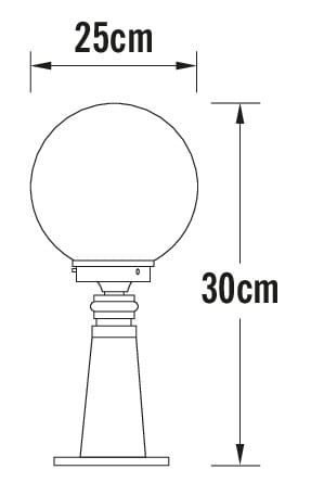 Pylväsvalaisin, valkoinen, 1-osainen, korkeus 30 cm, opaalilasi, IP23, E27 ei sis. pakettiin, polttimon max korkeus 210 mm.