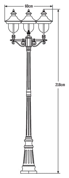Pylväsvalaisin, 3-osainen, musta/teräs, korkeus 218 cm, kirkas akryyli, IP43, E27 valonlähde ei sis. pakettiin, polttimon max korkeus 130 mm