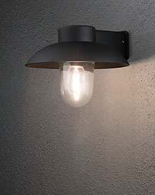 Seinävalaisin, musta, korkeus 21 cm, kirkas lasi, IP44, E27 valonlähde ei sis. pakettiin, polttimon max korkeus 125 mm.