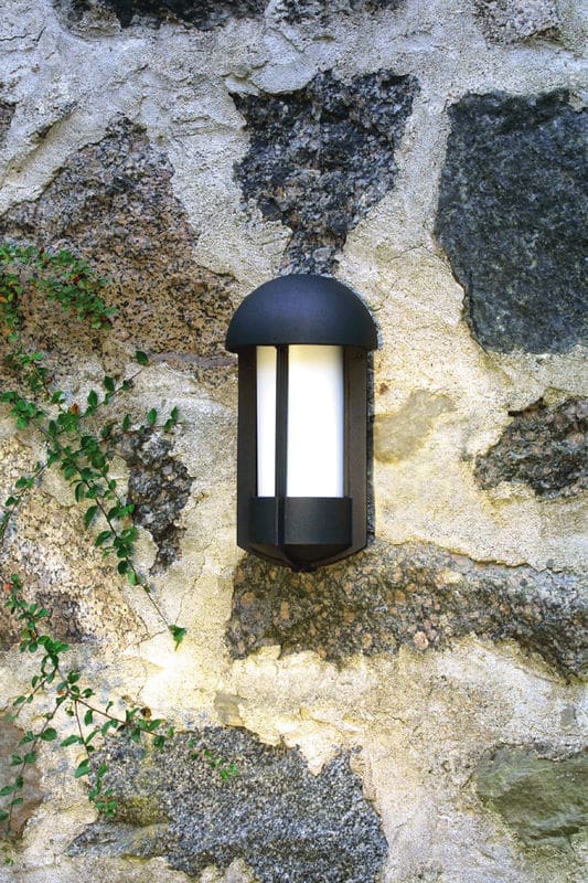 Seinävalaisin, musta, korkeus 38 cm, opaaliakryyli, IP23, E27 valonlähde ei sis. pakettiin, polttimon max korkeus 200 mm.