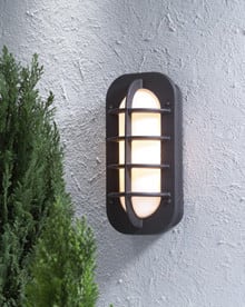 Seinävalaisin pistorasialla, musta, opaaliakryyli, IP23, E27 (tilattava erikseen, max 60W), polttimon max korkeus 200 mm.