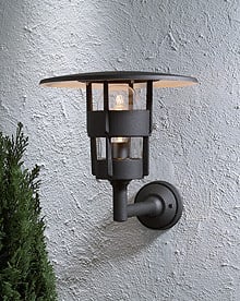 Seinävalaisin, musta, korkeus 40 cm, kirkas lasi, IP23, E27 valonlähde ei sis. pakettiin, polttimon max korkeus 135 mm.