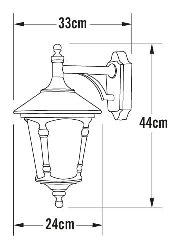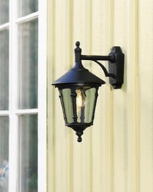 Klassinen ja näyttävä valaisinperhe, jossa mukana seinävalaisimia ja pylväsvalaisimia.