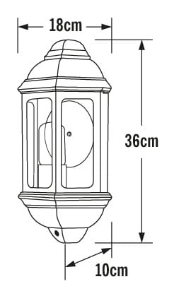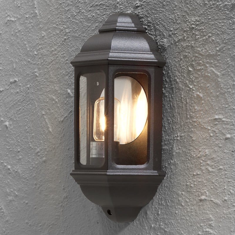 Seinävalaisin, musta, kirkas lasi, korkeus 36 cm, IP43, E27 valonlähde ei sis. pakettiin, polttimon max korkeus 180 mm