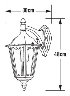 Seinävalaisin, musta, korkeus 48 cm, lyhty alaspäin, IP43, E27 valonlähde ei sis. pakettiin.