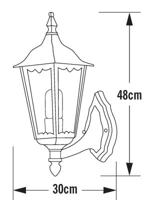 Seinävalaisin, musta, korkeus 48 cm, lyhty ylöspäin, IP43, E27 valonlähde ei sis. pakettiin.