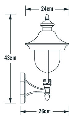 Seinävalaisin, musta/teräs, korkeus 48 cm, kirkas akryyli, IP43, E27 valonlähde ei sis. pakettiin, polttimon max korkeus 130 mm