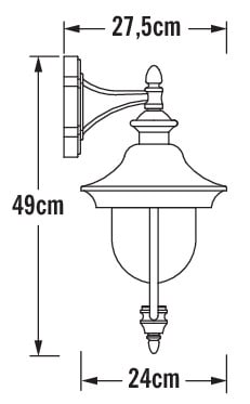 Seinävalaisin, musta/teräs, korkeus 49 cm, kirkas akryyli, IP43, E27 valonlähde ei sis. pakettiin, polttimon max korkeus 130 mm