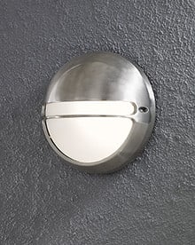 Seinävalaisin, ruostumaton teräs, opaaliakryyli, korkeus 26 cm, IP44, E27 valonlähde ei sis. pakettiin, polttimon max korkeus 130 mm.