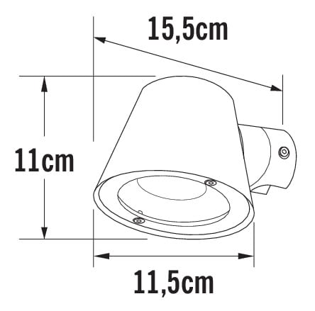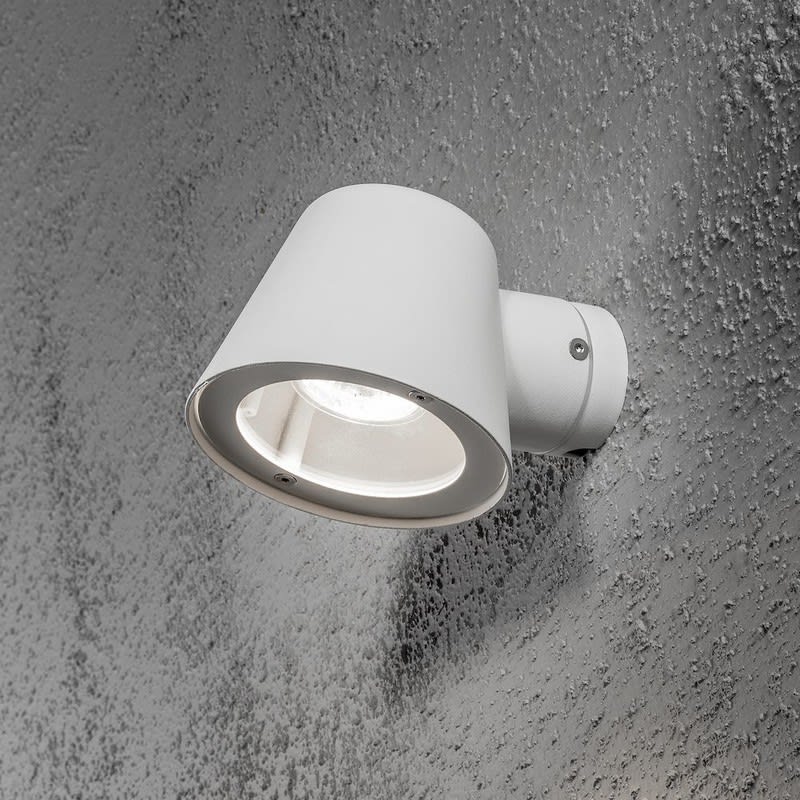 Seinävalaisin, valkoinen, korkeus 11 cm, alasvalo, IP44, GU10 valonlähde ei sis. pakettiin, polttimon max korkeus 64 mm.